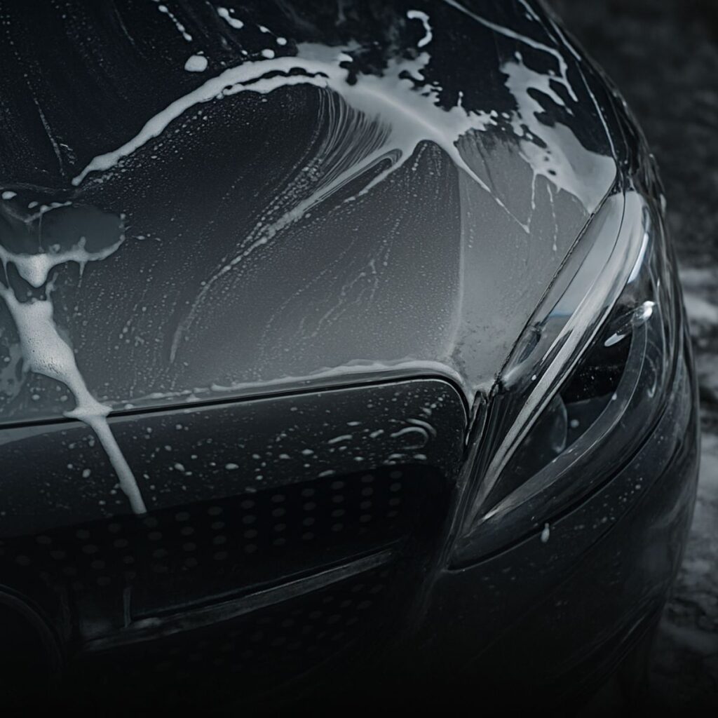 Intensieve voorbehandeling met snow foam om hardnekkig vuil en verkeersfilm los te weken.